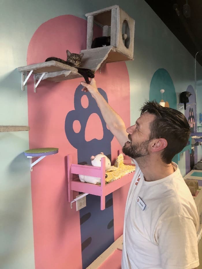 In the first three weeks of operation after a soft launch on March 29, the café has been fully booked during its current hours of 10 a.m.-4 p.m. Fridays through Sundays, he said. “We have already had seven cats adopted by people who came to visit.”