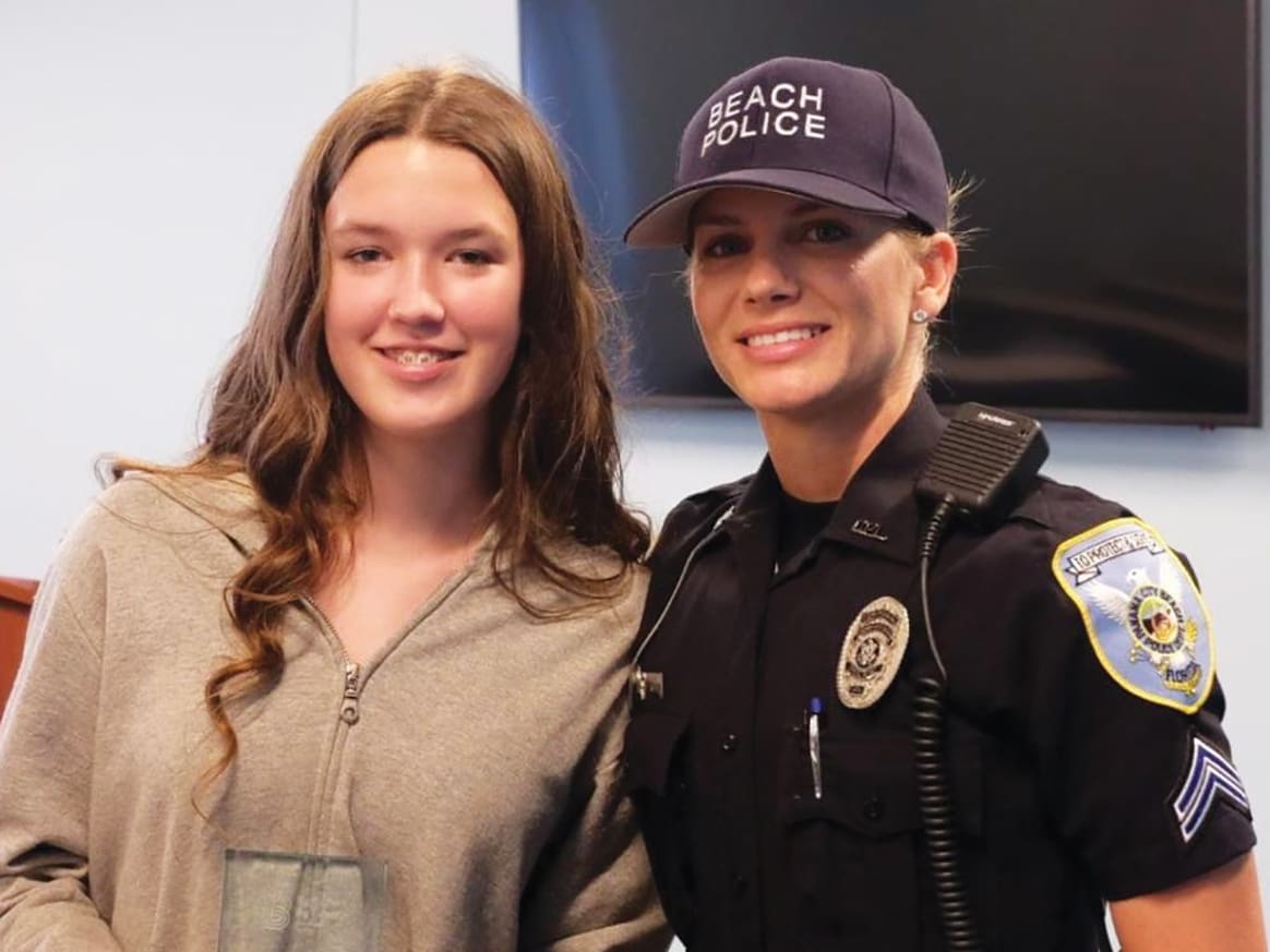 On June 17, 2021, Big Brothers Big Sisters of Northwest Florida (BBBSNWFL) surprised Panama City Beach Police Corporal, Tiffany McCullough, with the 2021 Virginia Thomas Big of the Year Award at the Panama City Beach Police Department.