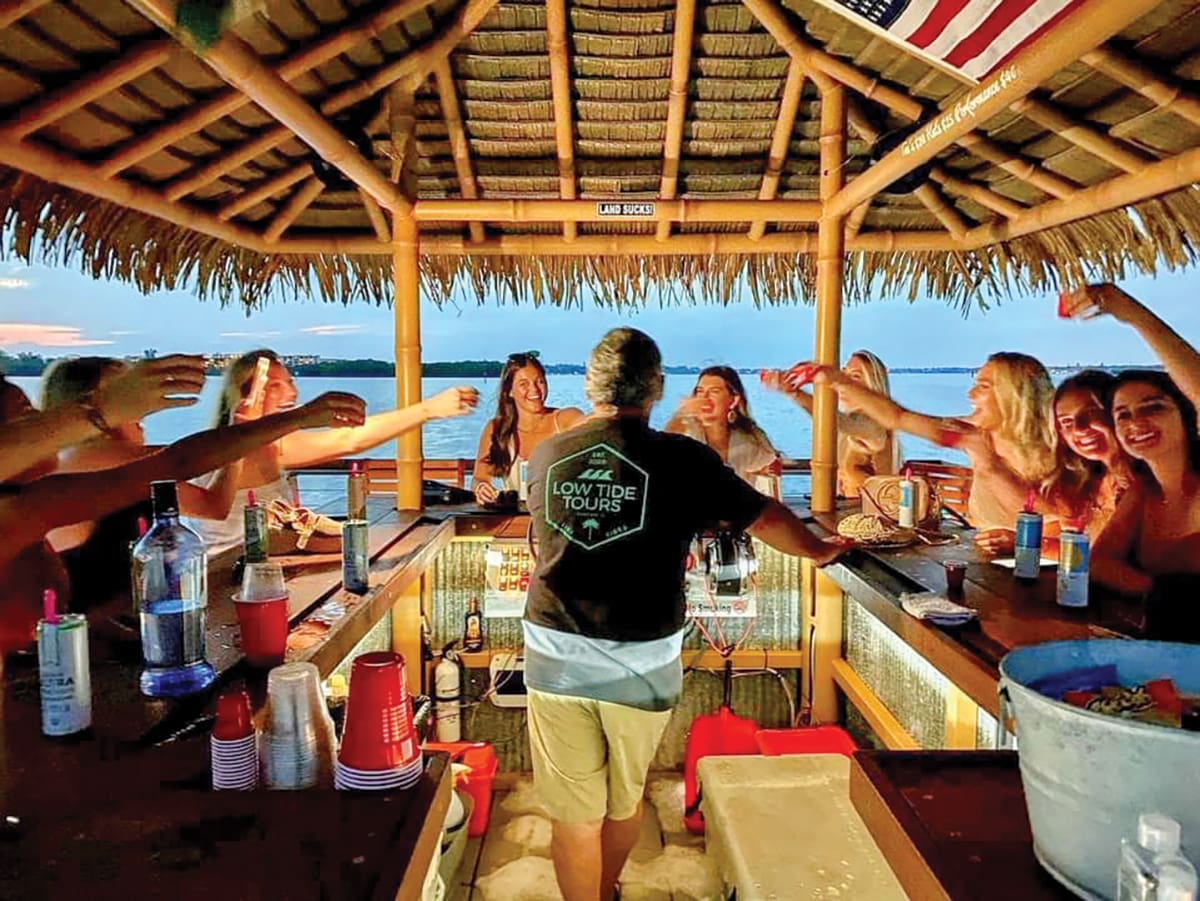 Low Tide Tours is a locally owned and operated tiki bar boat company here in Panama City Beach Florida. Kick back and relax with your favorite beverage and enjoy breathtaking 360-degree views, tropical tunes, and good company. We typically encounter dolphins, native birds, and gorgeous sunsets on our tours. We operate seven days a week, 365 days a year.