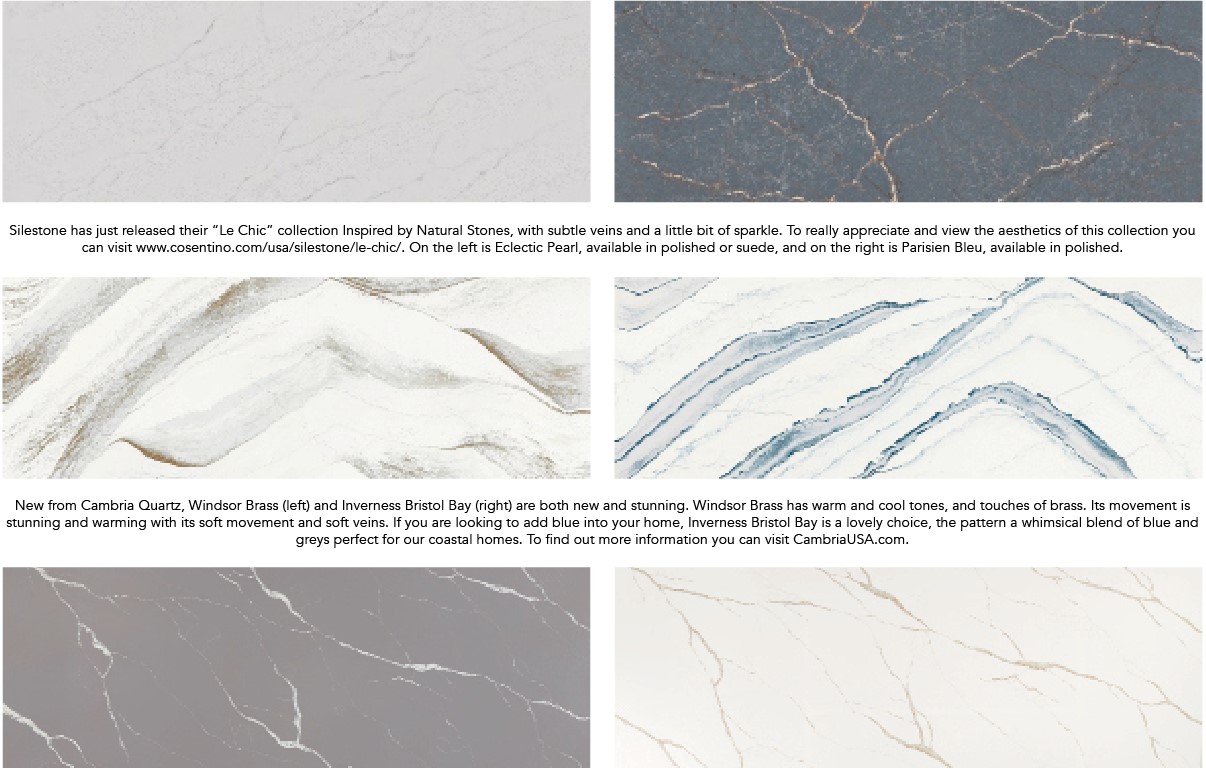 It has been an exciting year in Quartz countertops and there are many new colors to choose from! Silestone, Cambria and MSI have released some lovely new designs we’d like to share with you. Also, some styles are getting resurrected. The look of recycled glass is making its way back into our coastal homes. There are multiple options available out there for interior and exterior countertops when it comes to this style. If you are interested in countertops with recycled glass, I would highly suggest visiting your fabricator as pricing can vary greatly and they can assist you in finding a selection that works for your budget. Granite Plus is one of the oldest fabricators in Bay County and can assist you with your project, whether it’s new construction, a remodel or commercial.