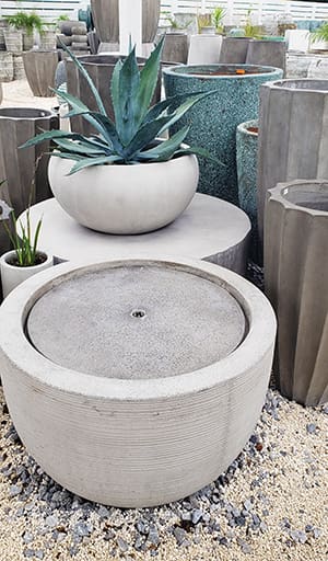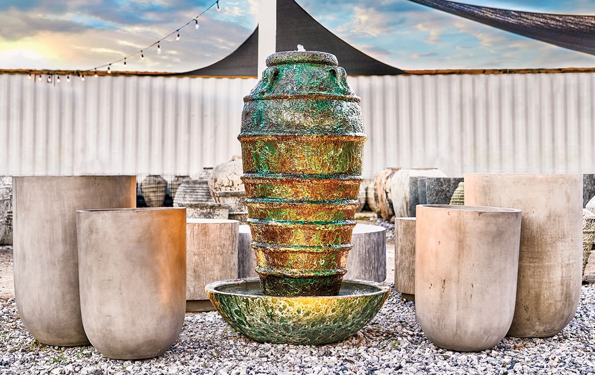 Maison Exterior ShowroomOutside there is an equally large space featuring pots and planters from around the world. So many pots and planters! From gleaming, glazed Mediterranean style pots in bold colors, to their much sought-after collection of subtle, neutral-toned pots and water fountains. All in sizes large and small and everything in between.