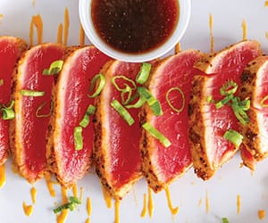 Come in and try our Boom Boom Tuna! The word Ahi in Hawaii refers to Yellow Fin Tuna, some of the tastiest fish in the ocean. Our version of Ahi Tuna is seared to perfection and served with our house siroc aioli.