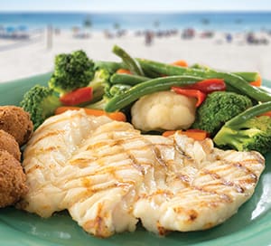 Fresh from the Gulf Grilled Grouper – a Schooners specialty. Arguably, the most flavorful of all local seafood harvests, Grouper is best when lightly grilled and accompanied by hot crisp hushpuppies, a few veggies and the world’s most beautiful view.