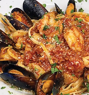 Seafood and pizza might not be your traditional pairing, but with our Grand Lagoon Pie you’ll get a feast of shrimp, clams, garlic, fresh basil, mozzarella, and olive oil that will make you rethink your whole approach. Or keep it simple with the Pink Shrimp Pie, featuring a vodka sauce (pink sauce) with tender shrimp. If you’re in search of the best Italian food on the beach (with a seafood twist), look no further!
