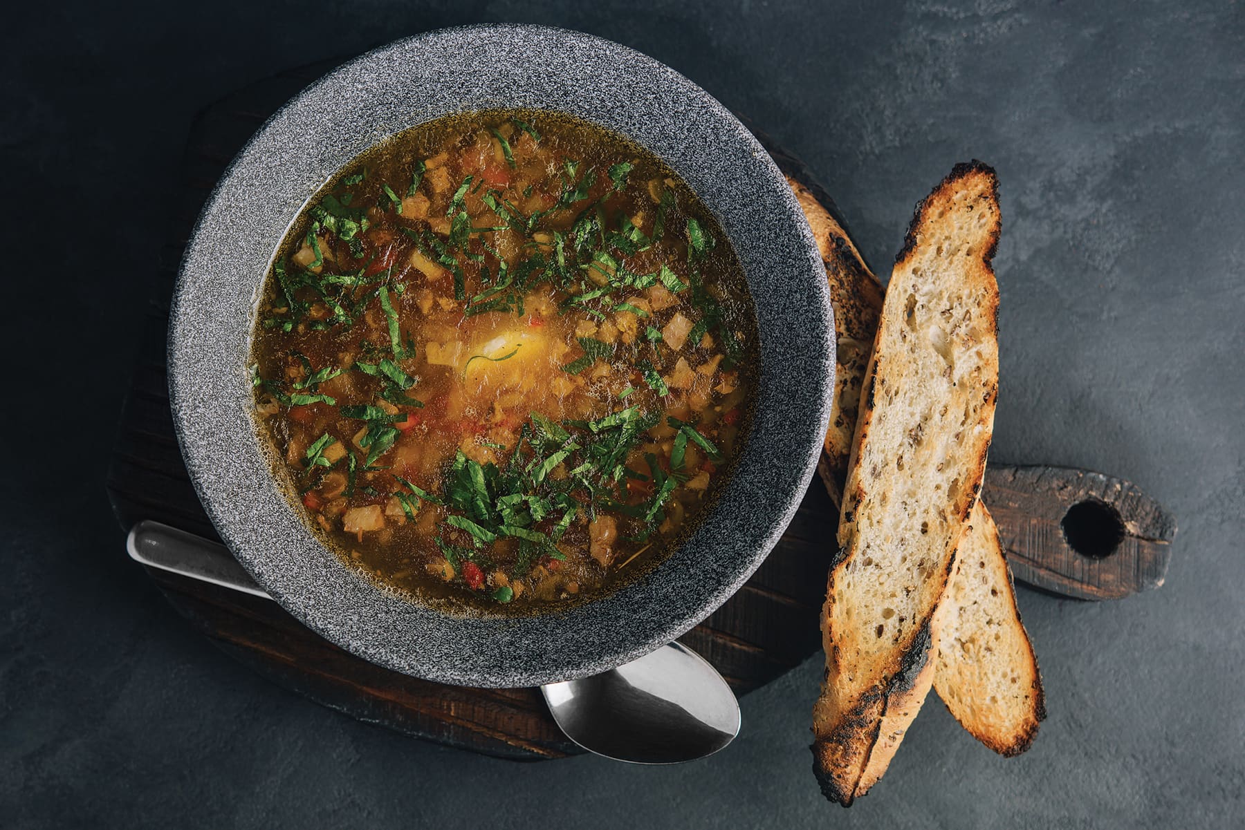 The wedge with a view! A whole heart of romaine lettuce, bacon, blue cheese crumbles and blue cheese dressing sets this salad apart. Try it with our New Orleans style Seafood Gumbo!