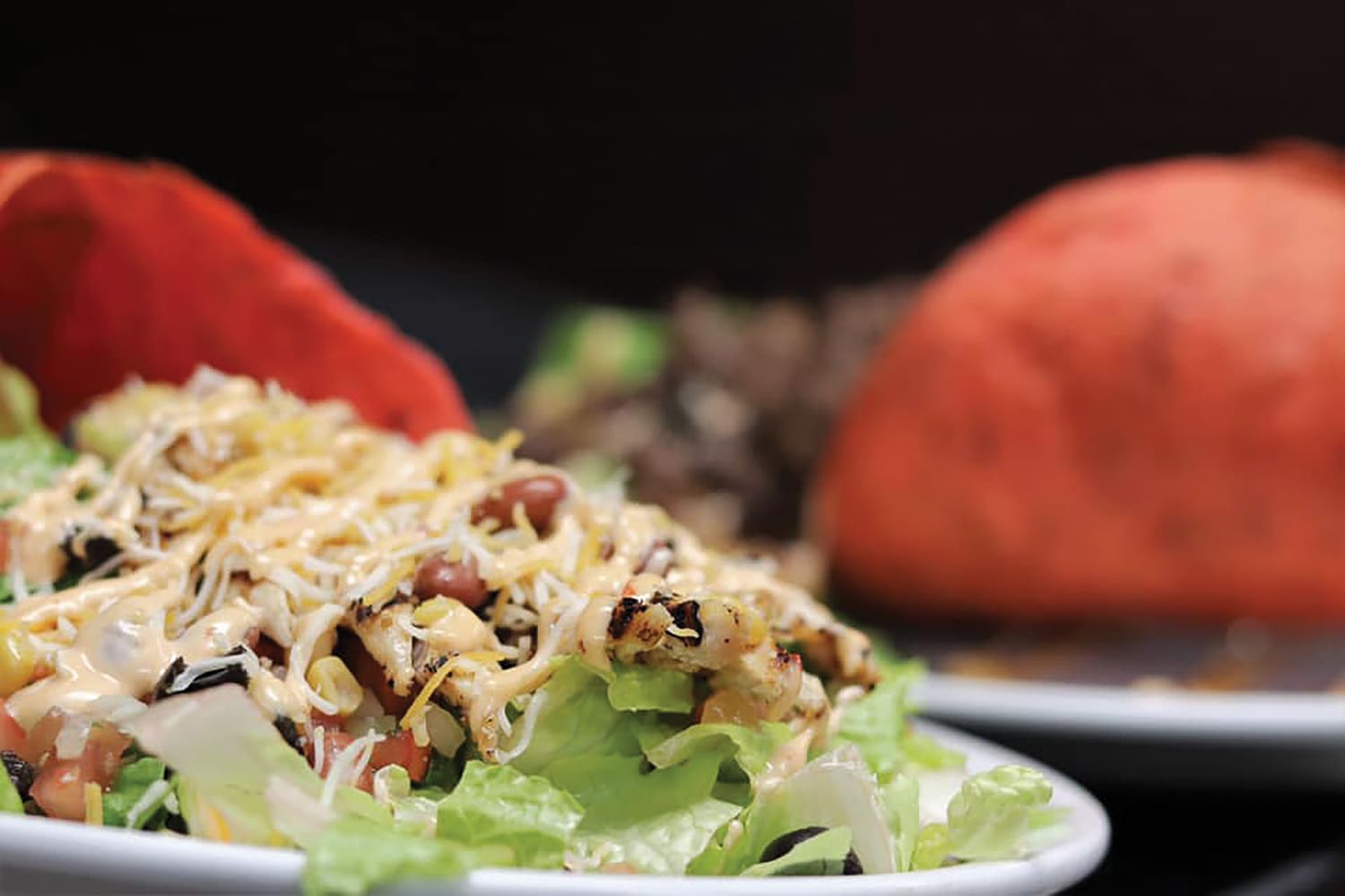 Come for the food, stay for the fun. Our fiesta taco salad is a party in your mouth with a crispy flour tortilla, beans, rice, lettuce, pico de gallo, guacamole, queso fresco, with chipotle dressing and your choice of chicken, shrimp, arrachera or carne asada. Or try our seafood gumbo with shrimp, scallops, crawfish, crab, andouille sausage, okra and steamed rice.