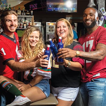 Your football watching spot this season! Covered outdoor bar and beachfront pool. Start the game with Fried Pickles or Beer Battered Onion Rings and work up to our famous Grouper Po Boy or Dirty South Shrimp Tacos. Cheer on your team with a domestic, imported or craft beer, or be adventurous with a White Lightning Margarita (made with moonshine).
