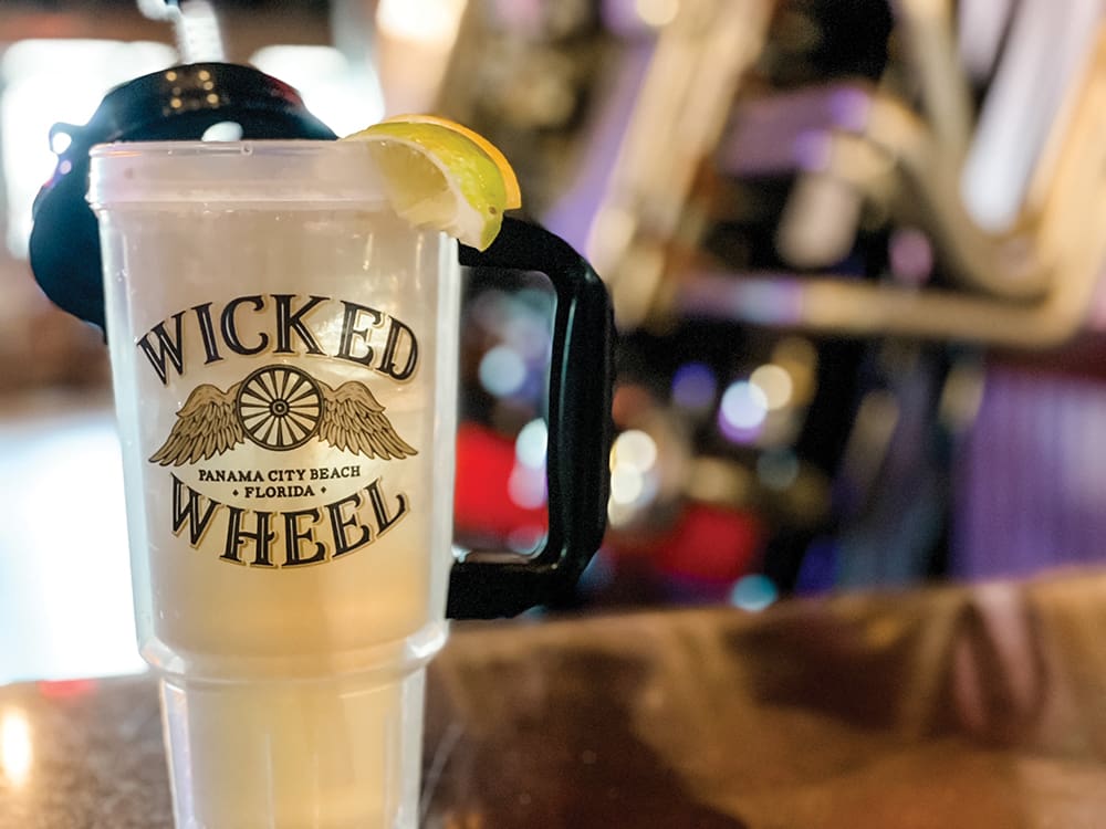 Fill up your tank at The Wicked Wheel with their famous Gasoline Tea! This version of the traditional Long Island Iced Tea is made with clear 100 proof moonshine, rum, gin, tequila, triple sec, sweet & sour and a splash of Coca-Cola. Get your engine revving with a 32-ounce Gasoline Tea served in an insulated souvenir cup!