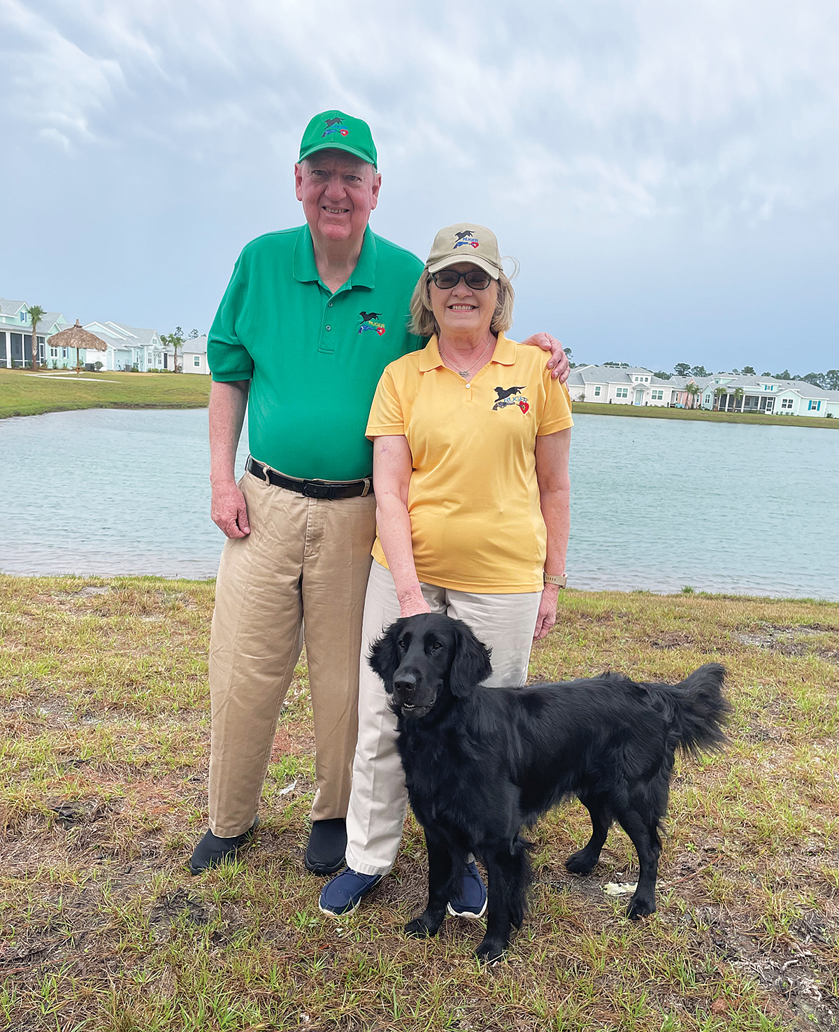 So the Bradys decided to let Ruger compete for his Grand Championship against dogs who had become champions. In his first two shows in Clemson, SC, and Brooksville, FL, he won four Best of Breeds and needed one more point to become Grand Champion. The next show was in Lakeland, FL. Friday he won Best of Breed and became a Grand Champion. The next day was special because it was a supported entry by the Flat-Coated Retriever Society of America. There were 48 Flat-Coated Retrievers entered and Ruger won Best of Breed. Later in the afternoon, he competed against the other sporting dog winners and won third place. Sunday, he won another Best of Breed and another third place in the Sporting Group. In a short time, with limited showings, he was the number one Flat-Coated Retriever in the country. “We could not believe what was happening,” says Suzanne. “After all, all we wanted was a pet.”