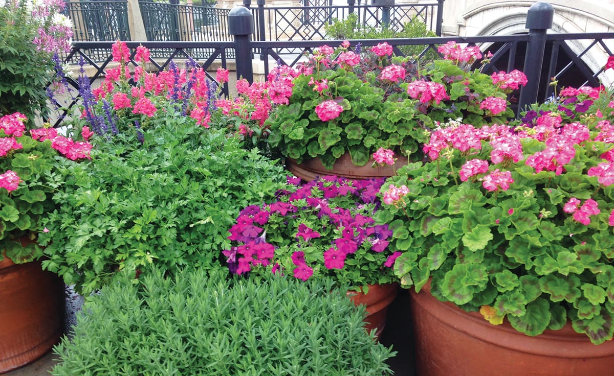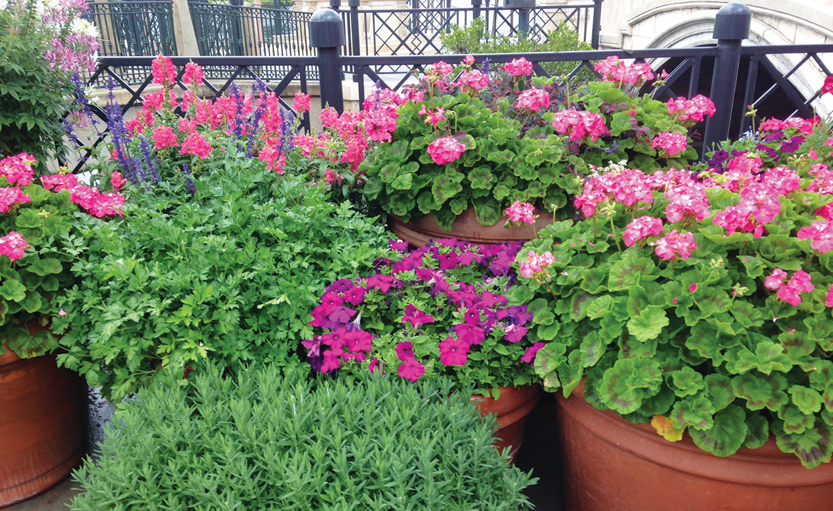 Plants in containers may have higher water needs when compared to in-ground plants, so make sure you check them regularly, especially during the hottest part of the summer. When making mixed containers, group plants together with similar sunlight, water, and fertilizer needs. Different growth habits such as upright and trailing and contrasting color combinations (foliage and/or flower color) add interest to container gardens.