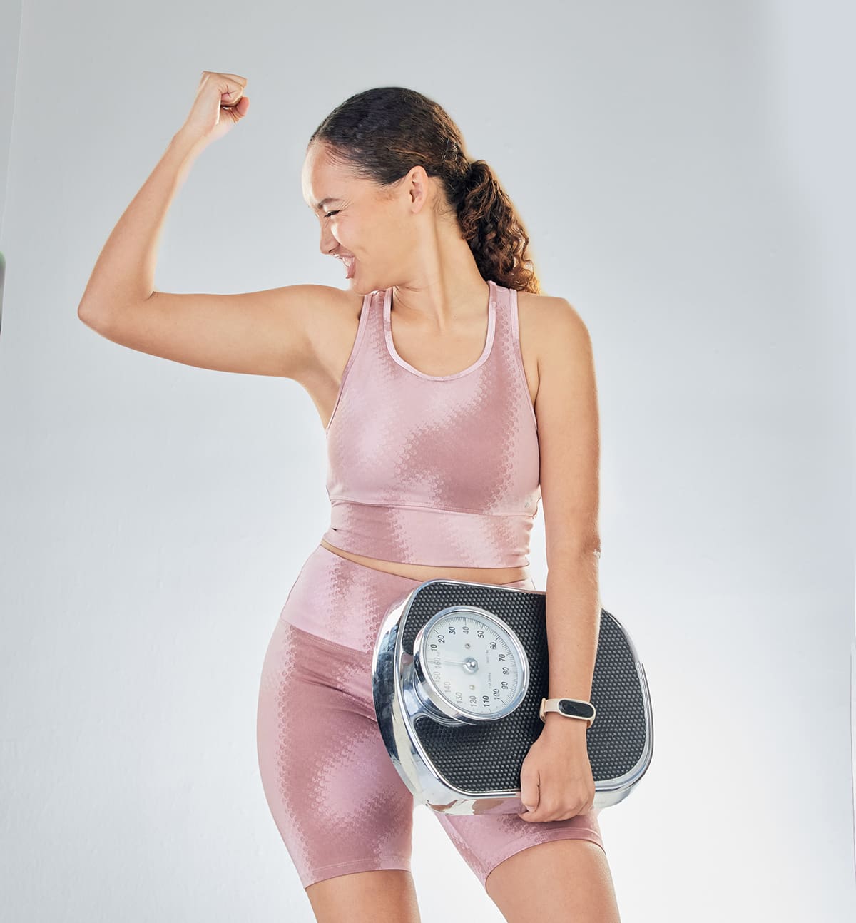 Scale, Success And Strong Woman With Fitness, Lose Weight Progress And Body Goals Or Fist, Power And Bodybuilder. Sports Person Or Model For Achievement, Diet And Yes Sign On Studio, White BackgroundJust as it didn’t take two weeks to gain the weight, it shouldn’t take two weeks to lose it. True, lasting weight loss is a marathon, not a sprint. Sustainable health isn’t about cutting corners or following one-size-fits-all plans—it’s about creating a tailored, thoughtful approach to your body’s unique needs.