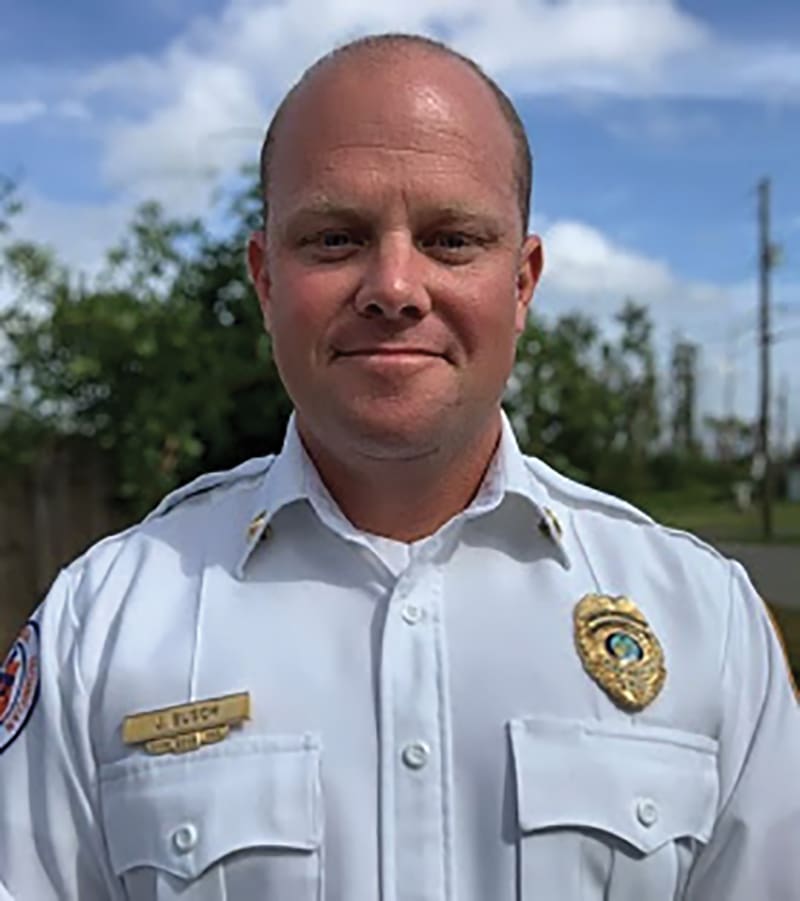 Busch joined the PCB Fire Department in 2003 after having served as a volunteer with both the Callaway and Parker Fire Departments. He began volunteering while a student at Rutherford High School. He worked his way up through the ranks from Firefighter-EMT to Lieutenant and Captain before being named Battalion Chief in 2016. In that role, he supervised the 16-member A Shift.