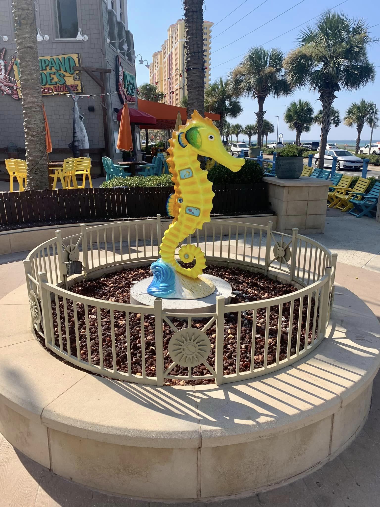 “See Horse,” a seahorse sculpture painted by Lee Ann Leonard, is on display at Pier Park on the roundabout on Bluefish Drive near the north side of J.C. Penney;