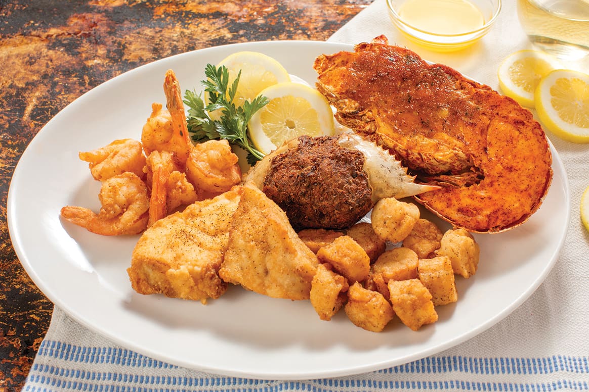 Along with the bread, most entrees come with a soup of the day or salad, potato or veggie, and a dish of warm, homemade hush puppies always makes its way to the table. Wine recommendations for many of the dishes adds a nice touch. “May we suggest a bottle of Beringer Luminus Oak Knoll Chardonnay, Napa Valley, with the fresh seafood selections? May we suggest a bottle of Lanson Brut Black Label Champagne with the fried seafood selections, or a bottle of Somona-Cutrer, RRV Chardonnay with any of the pasta dishes?”