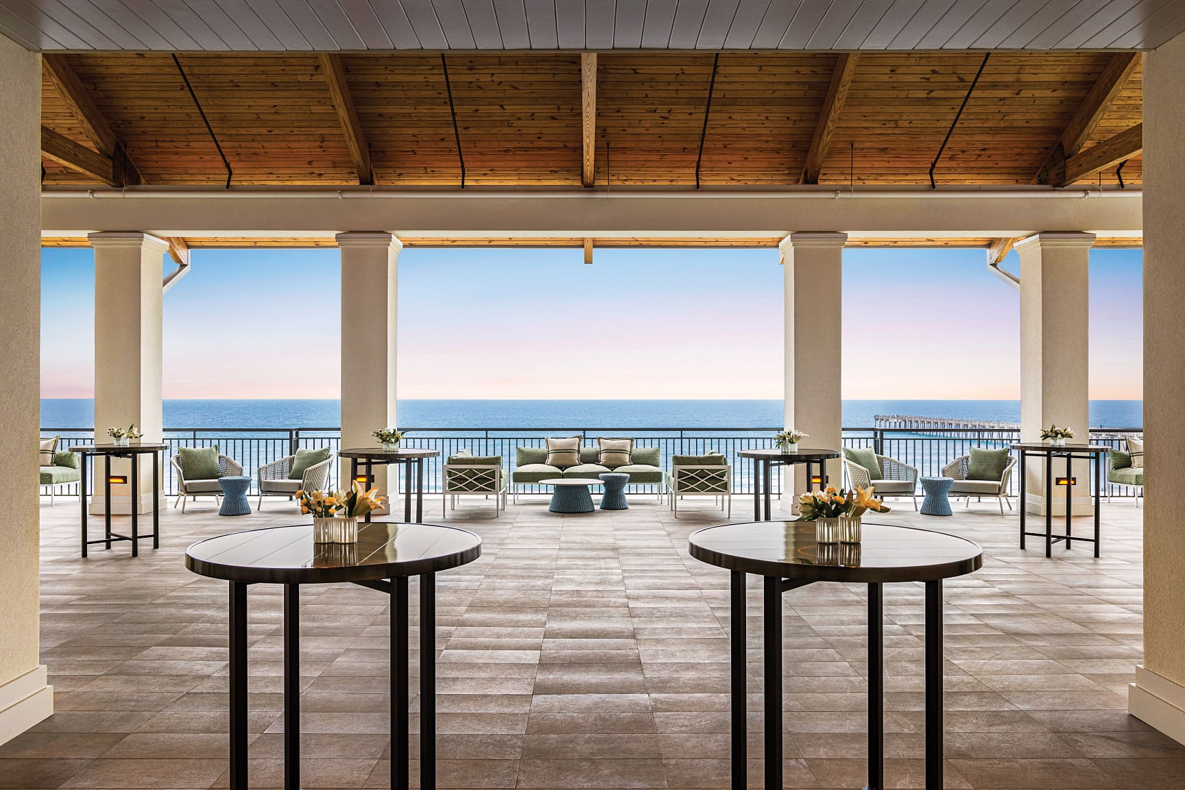 The resort features a Gulf-view pool complex with a waterslide and hot tub, a business center, a fitness center and approximately 15,500 square feet of meeting and event space. Additionally, the resort is home to two restaurants, Blu Bar & Grill serving lunch and dinner with both indoor and outdoor seating, and Fin, which provides guests with a complimentary hot breakfast. Vue 55, the fifth-floor, open-air event venue, is available for weddings and group functions and boasts sweeping views of the Gulf of Mexico and the Russell-Fields Pier.