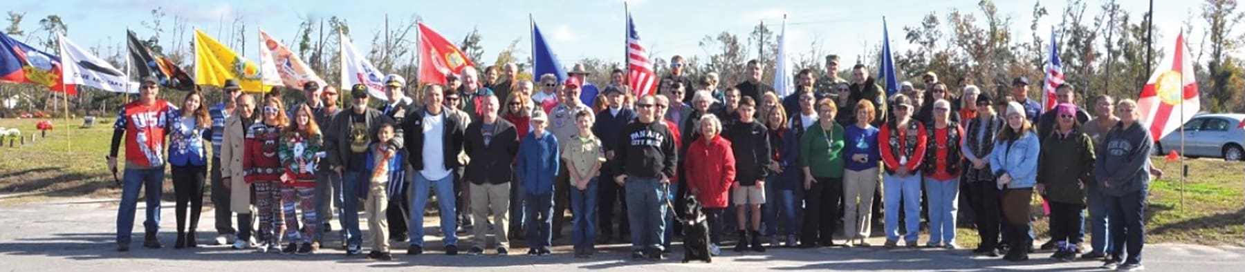 The first ceremony at Evergreen Memorial Gardens was weeks after Hurricane Michael. One family shared that due to hurricane damage to their home, for the first time in their lives, they had no Christmas tree or decorations or place to put a tree up where they sheltered. For them it brought comfort in the Christmas season to celebrate their memories of their father and Christmases past by laying fresh live fir wreaths on the markers of veterans. One of the Boy Scout volunteers shared that his grandfather was a veteran laid to rest at Evergreen and later was seen solemnly saluting his grandfather’s marker.